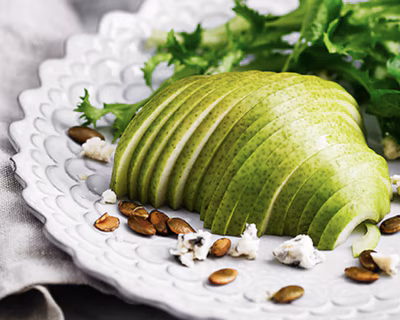If experimenting with other recipes, KitchenAid® stand mixers and attachments1 can help you make quick work of food prep with peeling or spiralizing, like in this pear salad with blue cheese dressing.