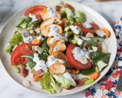 Blue cheese can be a tasty, salty alternative to ranch dressing for your snacks, chicken and salads. Mix together sour cream, white wine vinegar, buttermilk and garlic for a tasty homemade blue cheese dressing.