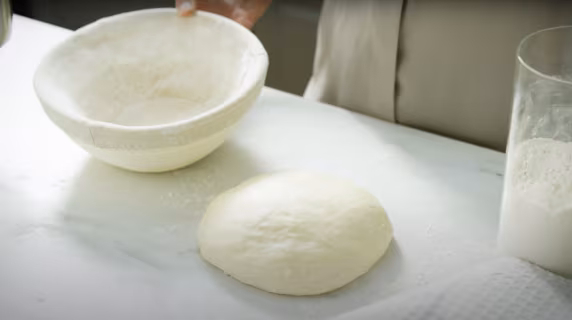 Place the dough into a floured proofing basket and let it rise.