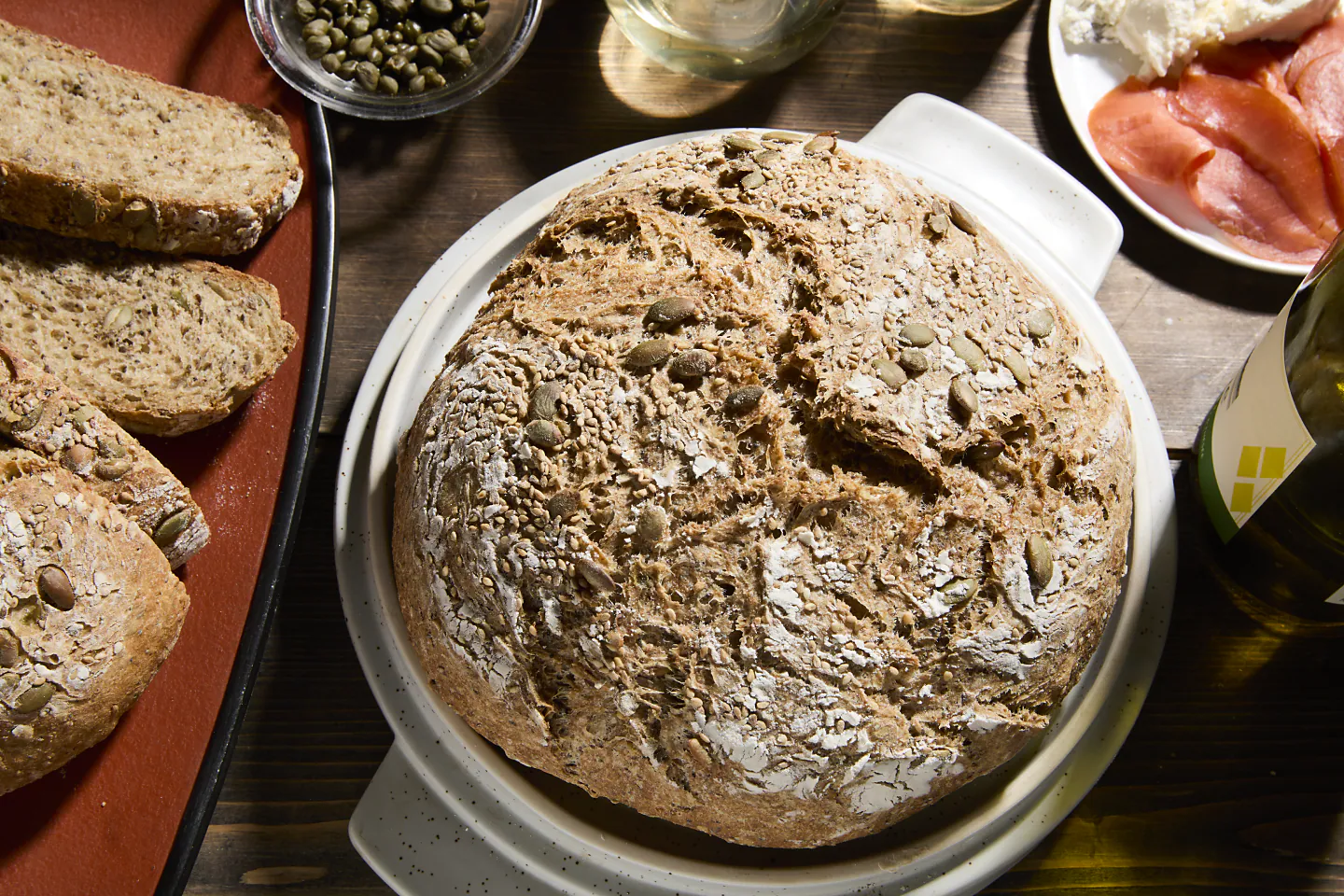 Every great loaf of crusty bread begins with a handful of simple ingredients that you probably already have in your pantry – flour, salt, yeast and filtered water. Some recipes might include herbs or other flavorings, a little sugar to keep the inside tender—or if you’re making sourdough—a sourdough starter. But as a general rule, crusty breads don’t contain eggs, sour cream, butter, cream or any other “softening” ingredients, unlike softer breads like challah.