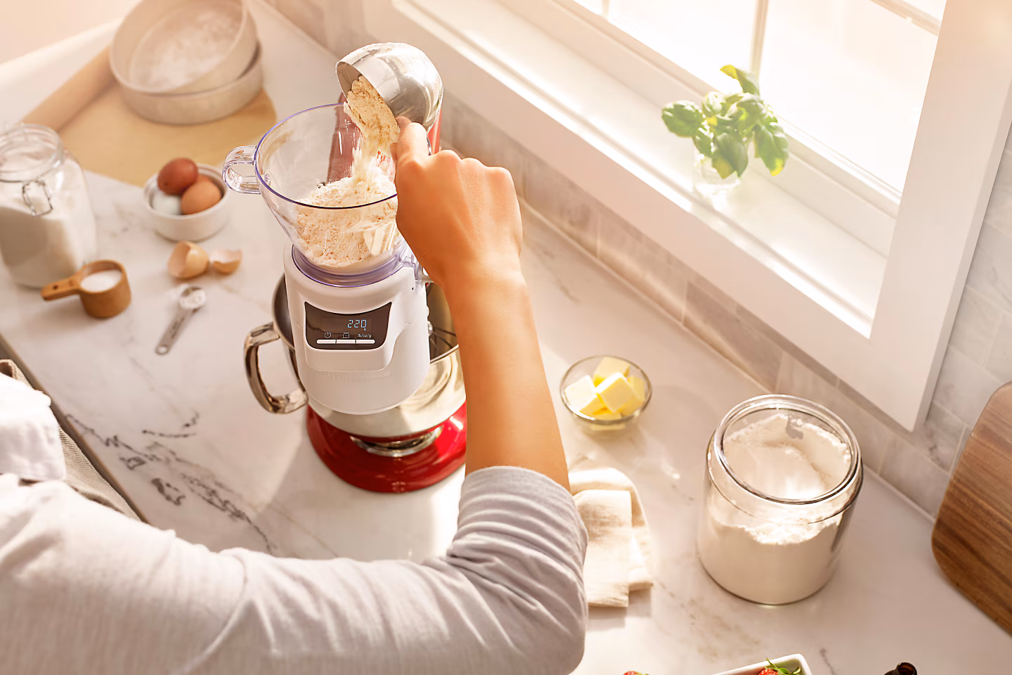 Attach the Sifter + Scale attachment to your KitchenAid® stand mixer.