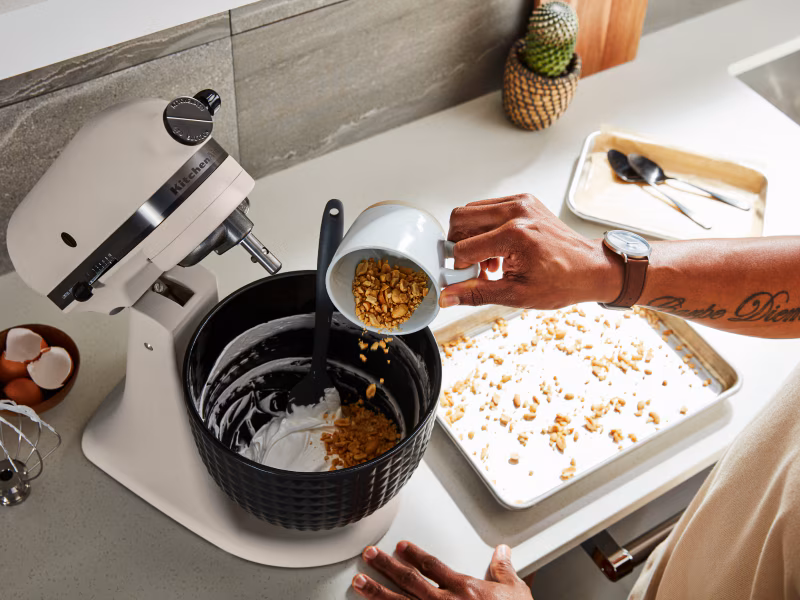 Consider making a recipe from start to finish more than once, rather than all at once, if you’re not confident that ingredients can mix evenly, or you’re worried that ingredients like cold butter will lose its integrity as you take longer to perform tasks like rolling out biscuit dough. You could also use multiple KitchenAid® stand mixer bowls to help streamline the process, chilling ingredients in a stainless steel bowl in the refrigerator while heating other ingredients in a ceramic bowl in the microwave.