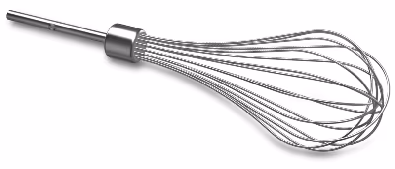 A whisk is another common hand mixer attachment that can be used for a variety of recipes. The most common type of whisk is shaped like a balloon and has wire tines. A wire whisk is used for incorporating air into a light mixture quickly. The KitchenAid® Stainless Steel Pro Whisk has 16 tines and can easily whip egg whites to fluffy peaks or transform heavy cream to whipping cream to top your favorite desserts.