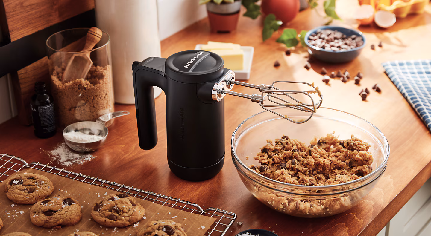Hand mixers are a convenient go-to appliance as you whip, beat or mix the ingredients of your favorite creations. They provide flexibility to move about the kitchen, and some models like the KitchenAid® Cordless 7 Speed Hand Mixer offer extra convenience because you are not tethered to one spot with a cord. Hand mixers typically come with two beaters, which are versatile and useful for many recipes. Other hand mixer attachments include a whisk, dough hook and blending rod.