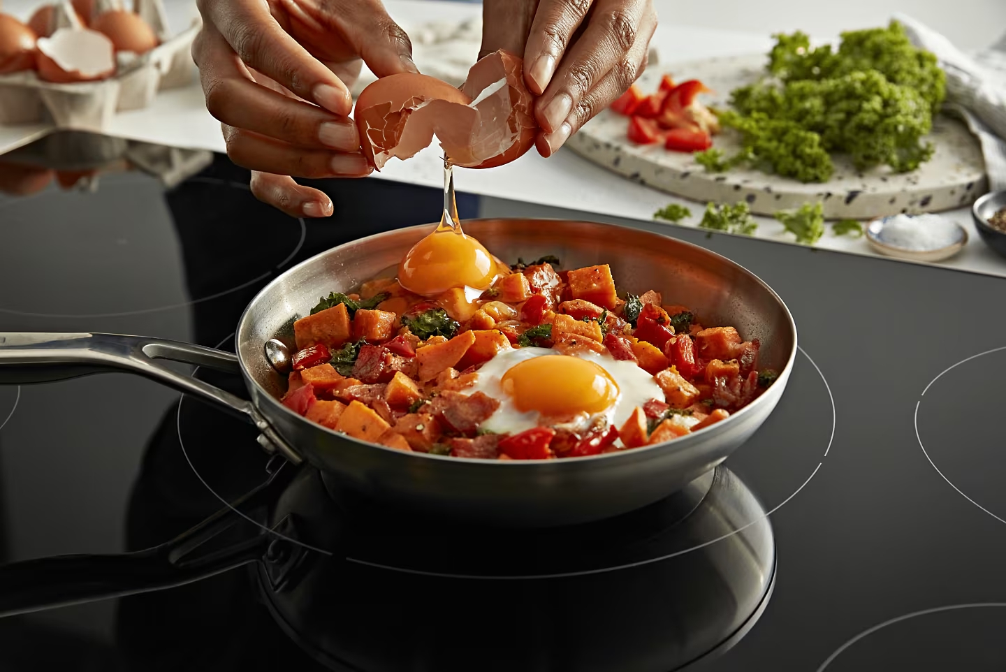 Egg bakes and scrambles make for the perfect hearty breakfast for large groups. The preparation involved is minimal, so you can focus on building the flavors and experimenting with various additions to create an elevated dish for an intimate brunch. Egg bakes can be made with a variety of ingredients such as mushrooms, spinach, cheese, tomatoes, peppers and onions — all of which can be incorporated with eggs to create a dish that is filling as well as delicious. Simply pop a tray in your KitchenAid® countertop oven to feed your crowd.