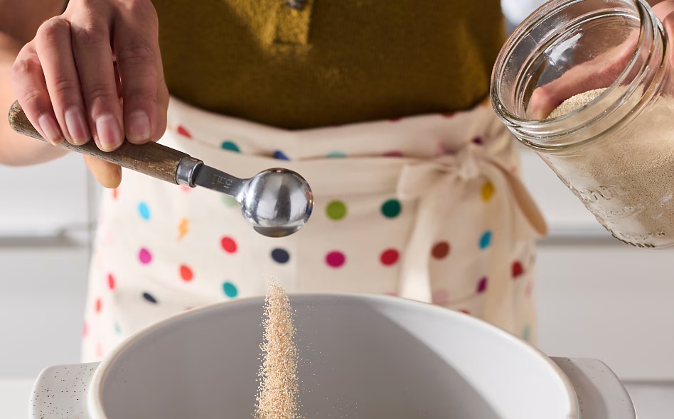 Before making your bread, gather your equipment and ingredients. Fill the KitchenAid® Bread Bowl accessory with hot water, then empty it and pat dry. This will help create a warm environment to encourage the yeast to bloom.