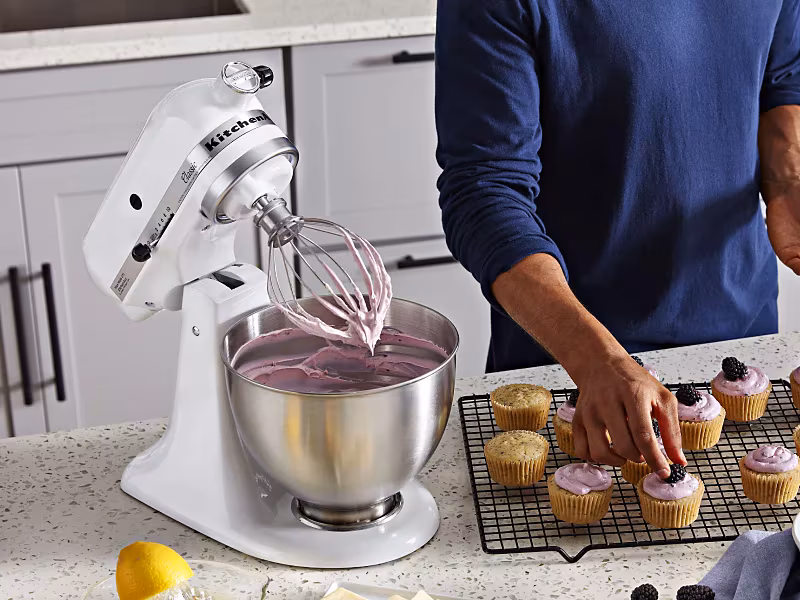Black and metallic colored KitchenAid® stand mixers are versatile additions to any countertop. While black stand mixers have a classic yet contemporary feeling to them, metallic colors bring a note of industriousness to the kitchen.