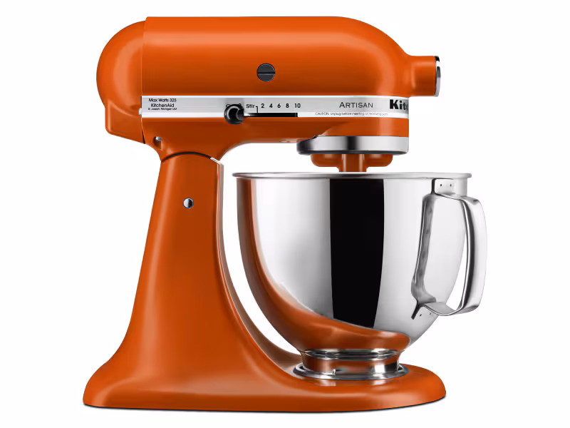 Scorched orange KitchenAid® stand mixers are the deepest orange color offered within the Artisan® series. The burnt color and low gloss finish stirs images of deep caramel and engages your senses while creating dishes that are just as visually engaging.