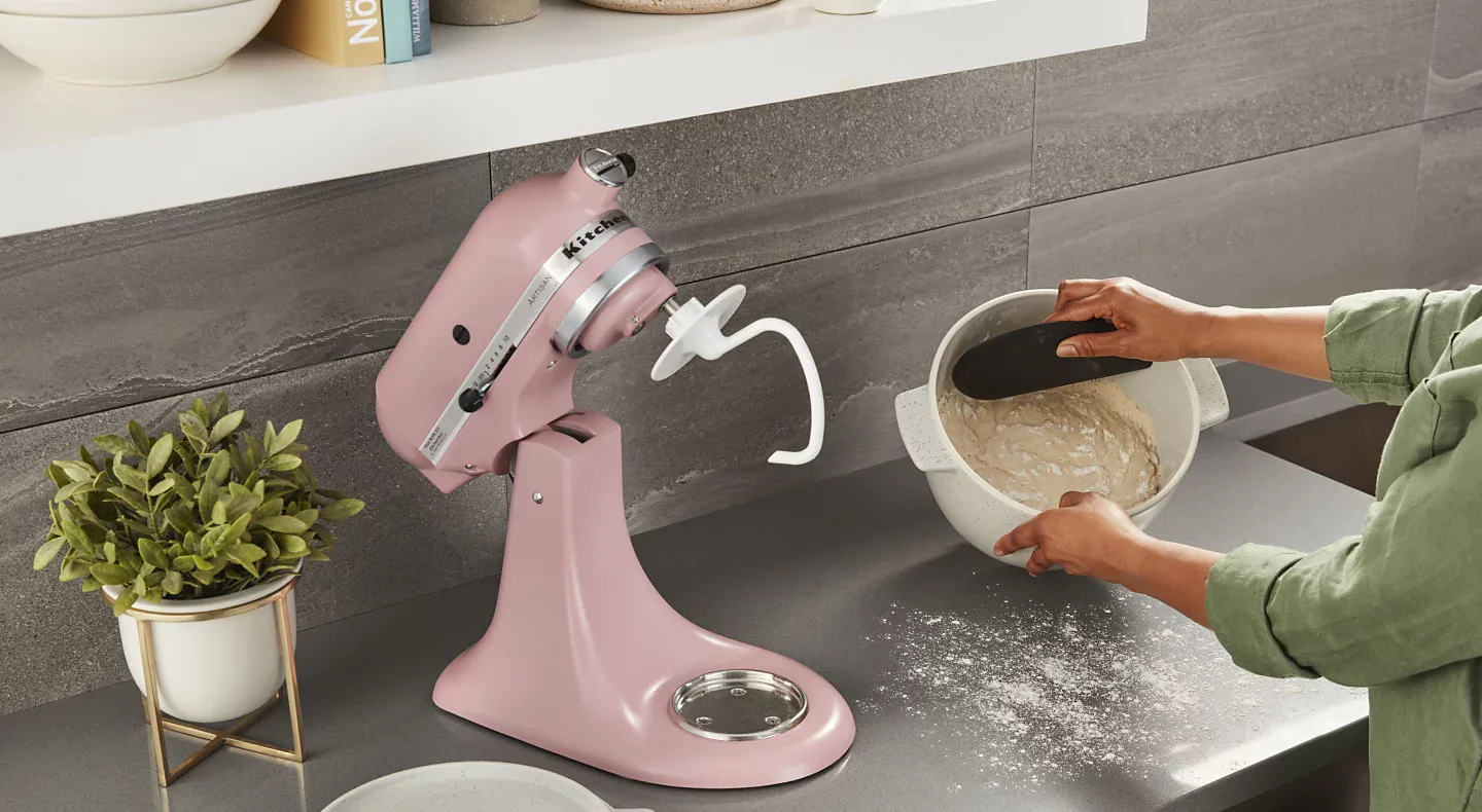 Feather pink KitchenAid® stand mixers are as quiet and muted as the name suggests, bringing a sense of tenderness to your kitchen. The matte finish of this stand mixer makes it blend in with its surroundings, while the pink adds a quiet patch of color to your countertop.