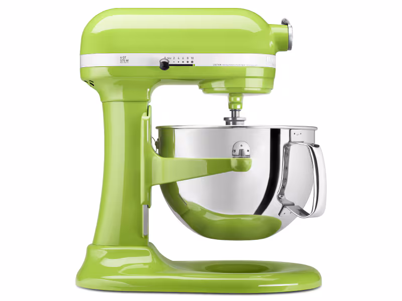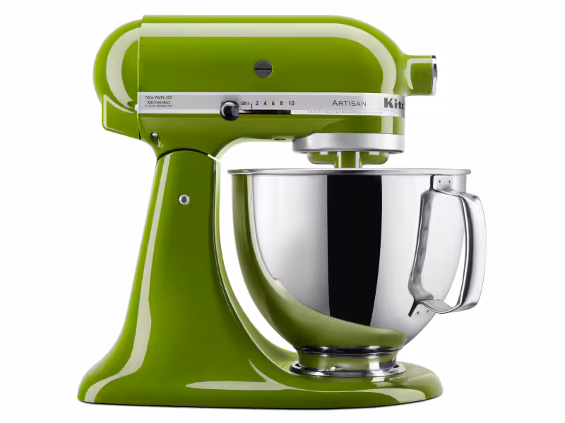 A fresh, bright green shade with a touch of yellow, green apple KitchenAid® stand mixers vibrate with lively energy. This high gloss shade can add a quirky appeal to your kitchen and serve as the perfect exclamation point to your decor.