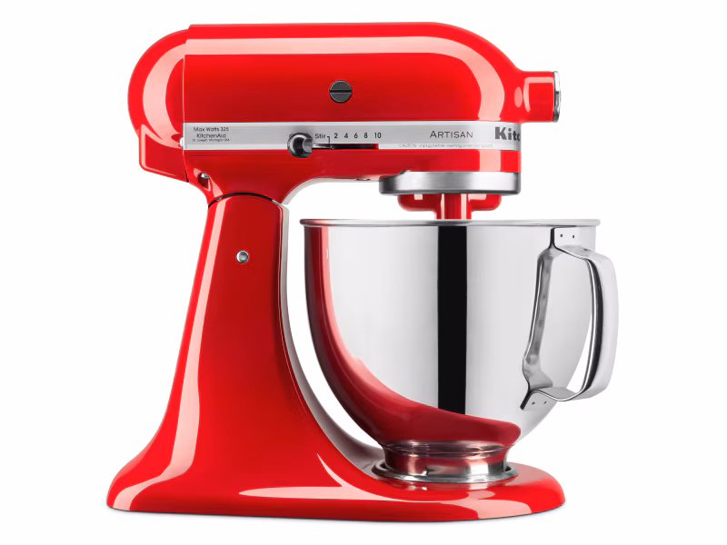 Candy apple red KitchenAid® stand mixers can instantly brighten up your kitchen. This deep jewel tone with a rich metallic finish is sure to inspire indulgent creations and can blend with your existing kitchen style or add a dramatic flair to a more muted kitchen.