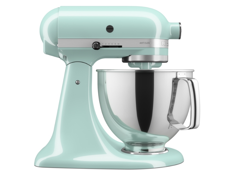 Aqua Sky KitchenAid® stand mixers fit into both modern and vintage-inspired kitchen designs. This clean and bright aqua with an equal balance of blue and green brings a refreshing accent color to your countertops. Aqua sky stand mixers come in a glossy finish and are the perfect complement to colorful kitchens, or add a pop of color against neutral shades.