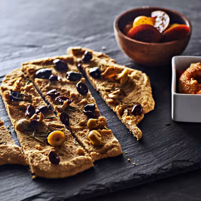 Socca is a gluten-free bread primarily popular in France as a street food or appetizer. This bread is made using chickpea flour and cooked on flaming grills. Serve it in slices to pair with your favorite dip recipe or follow the French tradition by serving it in a cone with freshly cracked salt and pepper.