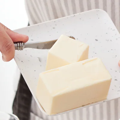 American-style unsalted butter typically contains 80 percent milk fat just like salted butter, but doesn’t include a salt additive, making it slightly sweeter. Unsalted butter is best suited to baked goods like blueberry pecan pancakes or no-knead Italian semolina bread that require a delicate balance of salty and sweet.