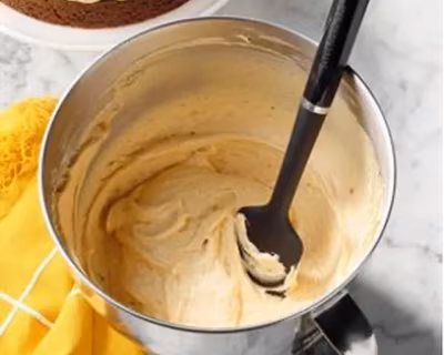 Before you begin making mascarpone buttercream, prepare your workstation so everything is within reach. Gather your ingredients and place your stand mixer on a clean, flat surface, then plug it in. Attach the Flat or Flex Edge Beater [1].